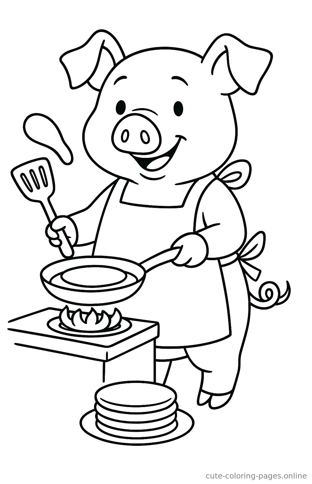 A cute pig chef making breakfast